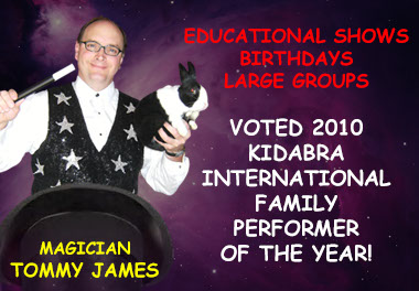 Massachusetts Magician Tommy James offers high energy magic shows for ALL family events Including birthday party magic shows in MA, RI and CT.